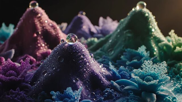Geometric cocktail tumbler with stratified tropical infusions (dragonfruit cubes, kiwi slices, edible flowers) rising through crystal-clear soda, placed on a frosted acrylic stand for modern spa vibes