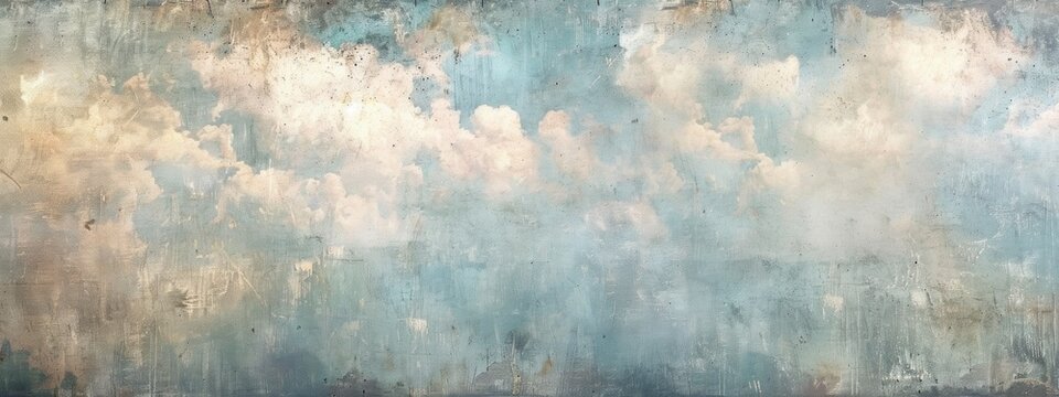 Abstract blue green background with texture, gradient cloudy light green to blue colors with soft sponged watercolor painted white misty fog