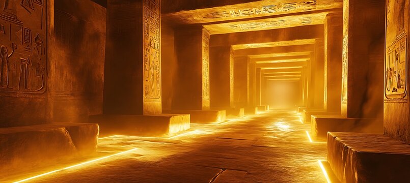 Mysterious Neon Hieroglyphs Pattern in an Ancient Chamber Backdrop with a Warm Background