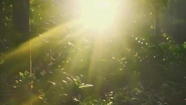 Sunlight streaming through forest celebrating love a tree day