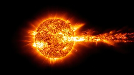 A close-up shot capturing the outburst of massive solar flares erupting from the sun. (Some elements furnished by NASA)
