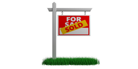 Sold for sale sign isolated against white background, Real estate concept. 3d illustration