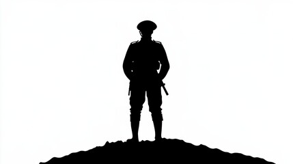 WW1 British soldier silhouette standing upright. Clipart image isolated on white background.