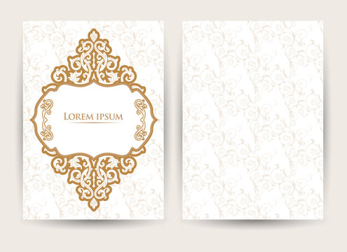 Vector decorative retro greeting card or invitation design. Exquisite rich and solemn Arabic pattern, stylish, elegant and modern interpretation of Islamic motifs.