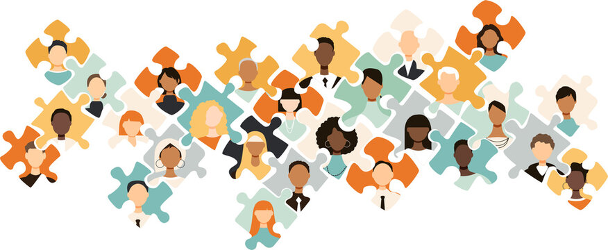 Different people in puzzles. Diversity concept.