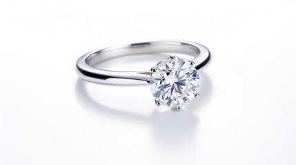 modern diamond solitaire engagement ring in white gold isolated on a white background generative AI