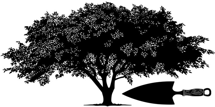Silhouette solitary tree under night sky | Clean, isolated vector art for creative projects.