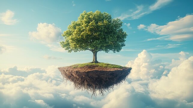 Solitary rock peak surrounded by clouds for tranquil backgrounds