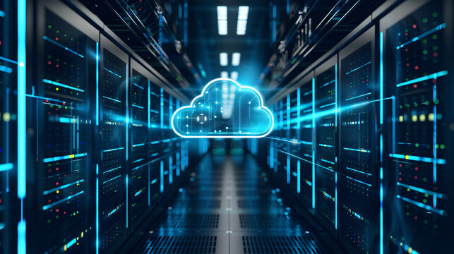 write 40 keywords for adobe stock separated by commas in one line on the topic: An illustration of a cloud-based server center, with different applications and technologies connected to it. Generative