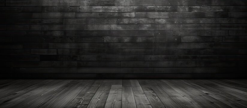Dimly lit room featuring a sturdy brick wall and polished wooden floors that add a rustic charm