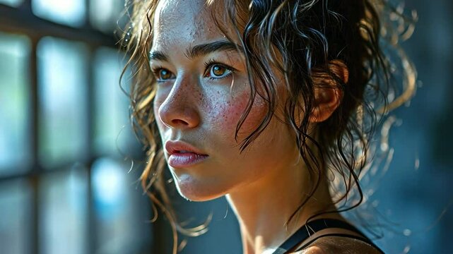 face or sombre in the studio with flex for health, well-being, or strength training in athletic attire