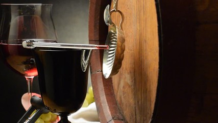 Elegant illustration of a wine glass and bottle adorned with vines and grapes, surrounded by ornate patterns and soft, warm lighting, evoking sophistication and refinement.