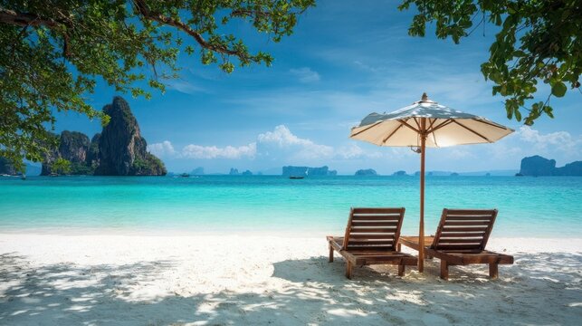 Serene beach relaxation promoting tranquility and travel themes