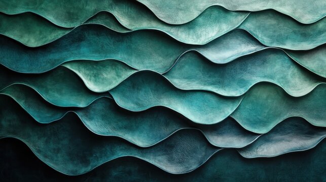 Waves of blue and green texture create a soothing visual experience in an artistic display of flowing materials