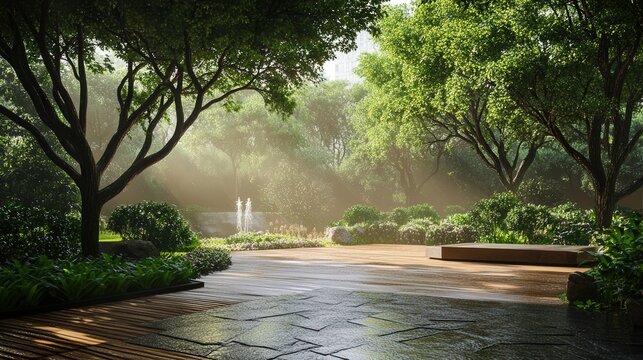 Misty forest backdrop with inspiring quote on imagination