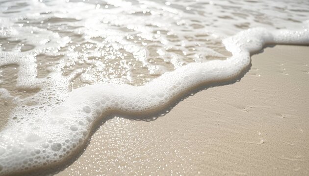 A captivating seaside ocean natural scenery. The ocean stretches as far as the eye can see, its waves rolling in with a soothing rhythm. The sky above is a beautiful blend of blues and whites. The san