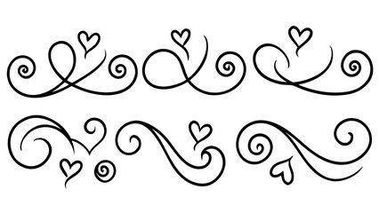 Elegant scroll designs with heart motifs Vector