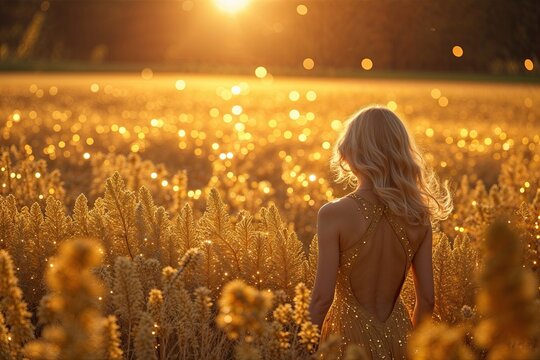 Enchanting Golden Field with Glowing Ambiance and Vibrant Shimmer