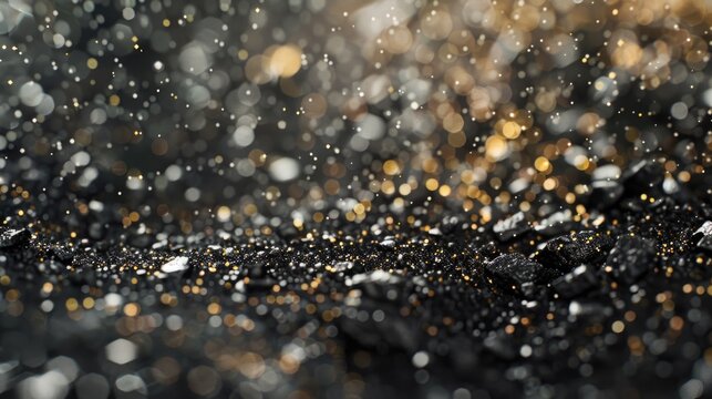 A close-up view of a black and gold background, suitable for various designs and layouts
