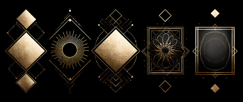 Vector set of design elements, labels and frames for packaging for luxury products in trendy linear style.