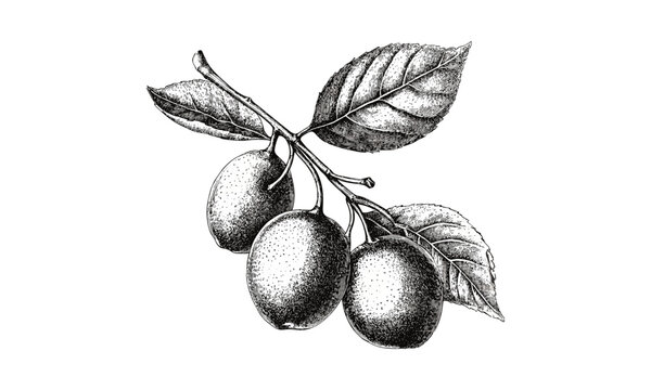 Antique style vintage engraving, detailed sorb fruit sketch, hand-drawn botanical food illustration, retro decor, old ink drawing, natural fruit print, classic fruit art, rustic design