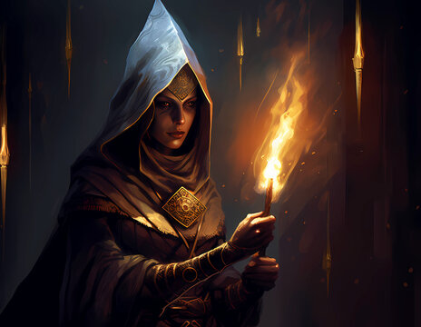 fantasy sorceress with flaming torch