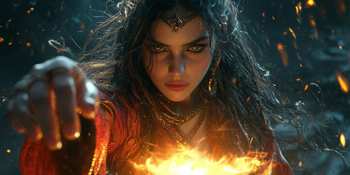 A powerful sorceress casting a spell