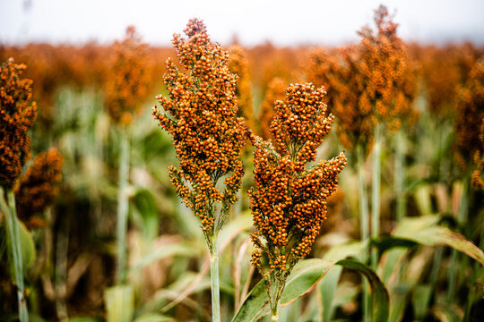 Closeup of a sorghum plant growing in a field