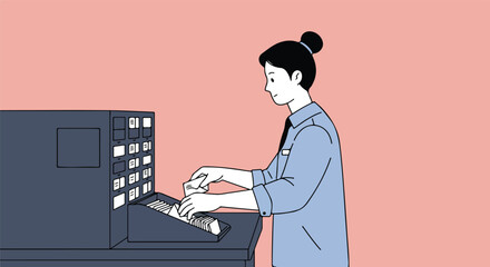 Vibrant textile waste sorted by color fills long bins in an industrial setting. Overhead cranes and machinery suggest a recycling facility. Bright and organized. Recycle waste background