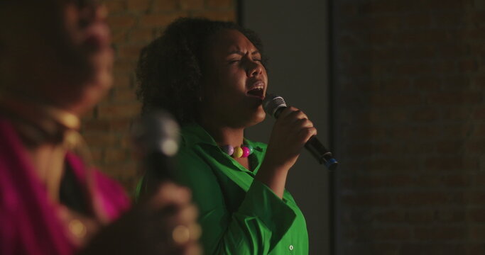 Soulful singer performing vibing with audience