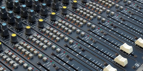 Sound control music mixer in record studio. Top view mixer and equalizer volume on the mixer amplifier. Digital audio system