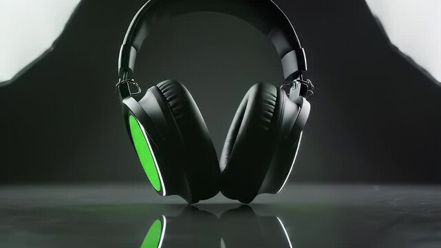 Close-up of Modern Headphones with Green Accents for Audio Experience.