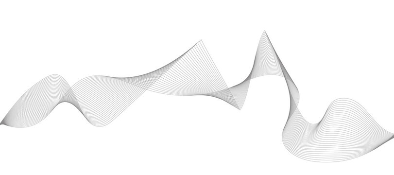 Grey abstract curved wavy lines on black background. Vector futuristic minimal design