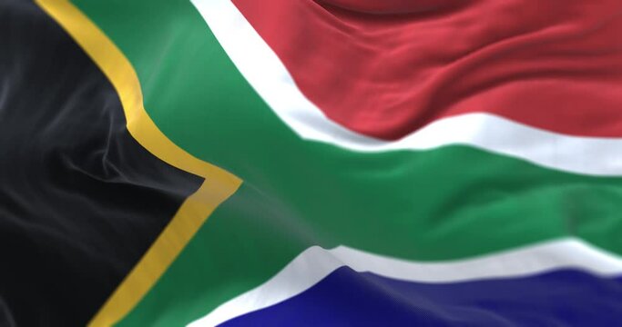 South African Flag Waving with Bright Colors and Fabric Texture on White Background