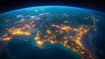 Experience the breathtaking satellite view of Earth, showcasing the southeastern United States bright lights at night, transforming the landscape into a stunning celestial nightscape.