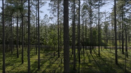 Aerial footage in southeastern North Carolina during the spring on a partly cloudy day