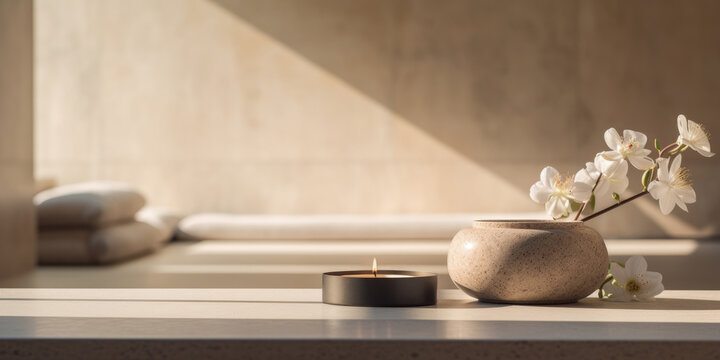 A luxury spa bathroom with a steam shower and marble details. AI generated