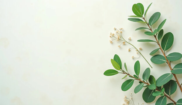 Eucalyptus leaves and copy space. Aroma. Botanical. Nature. Natural. Background material.