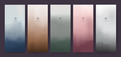Poster set in modern art style. Concept of beauty in harmony and nature. Minimalist trendy illustration of female figure, portrait of beautiful girl, abstract nature scene. Wall art, print, cover, ads
