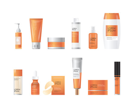 set cosmetic or perfume bottles beauty spa products natural cosmetology skincare packaging branding skin treatment concept realistic packages collection
