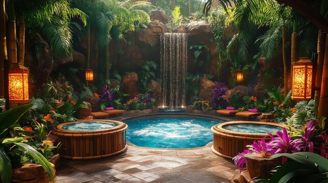 Elegant A quiet spa scene and gentle waterfalls in the background