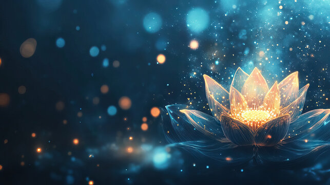 shining Lotus Flower against bokeh background, purity and spiritual awakening for World Interfaith Harmony Week banner with copy space.
