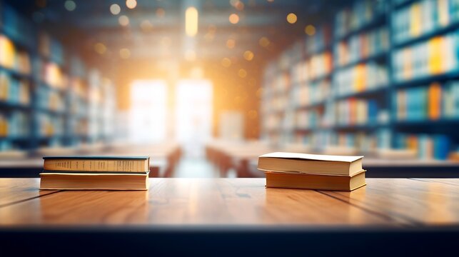 Abstract blurred empty college library interior space. Blurry classroom with bookshelves by defocused effect. use for background or backdrop in book shop business or education resource : Generative AI