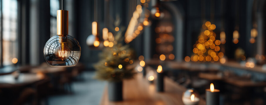 Luxury christmas decoration theme in elegant restaurant warm ambience indoor space festive mood