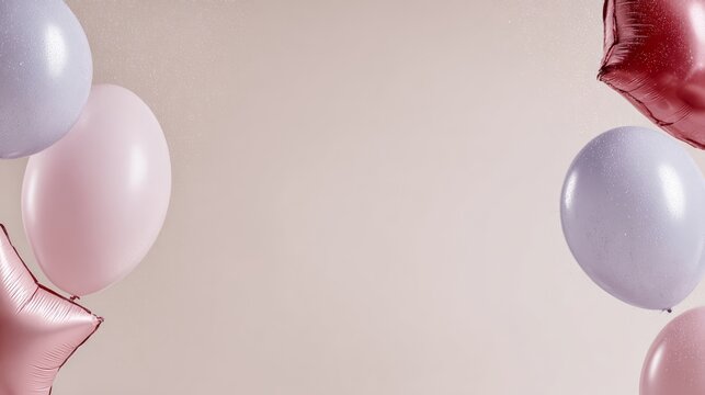 Cartoon pastel kawaii banner featuring cute party elements like balloons and stars, creating a joyful atmosphere perfect for celebrations and festive occasions with copy space