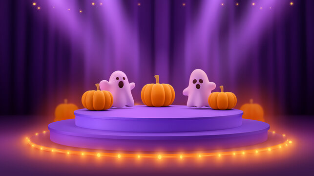 Halloween podium, Halloween themes with a festival background, holiday celebration illustration with copy space on purple banner design. happy Halloween day.