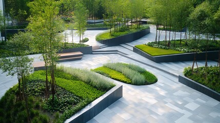 Collaborative urban planning incorporating green spaces and eco-design, solid color background