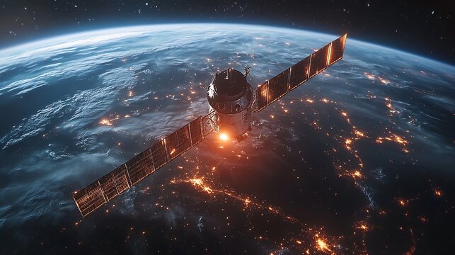 Telecommunication satellite providing global internet network and high speed data communication above Europe Satellite in space low Earth orbit Worldwide communication technology : Generative AI