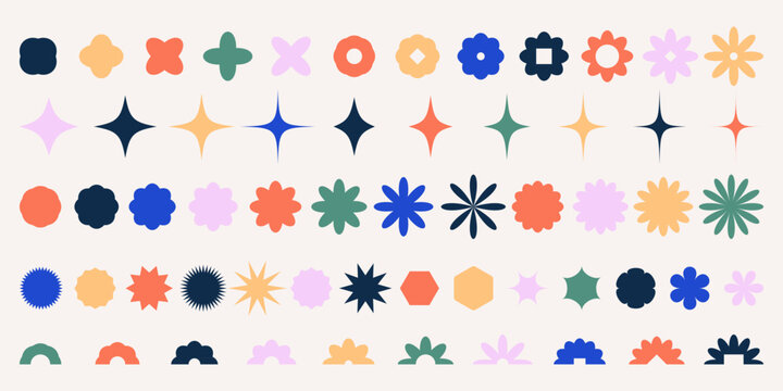 Brutalist geometric y2k shapes and figures various form. Trendy retro figure, flower and other abstract elements set. Vector design aesthetic