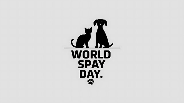 Minimalistic World Spay Day Design with Cat and Dog Silhouettes and Paw Print
